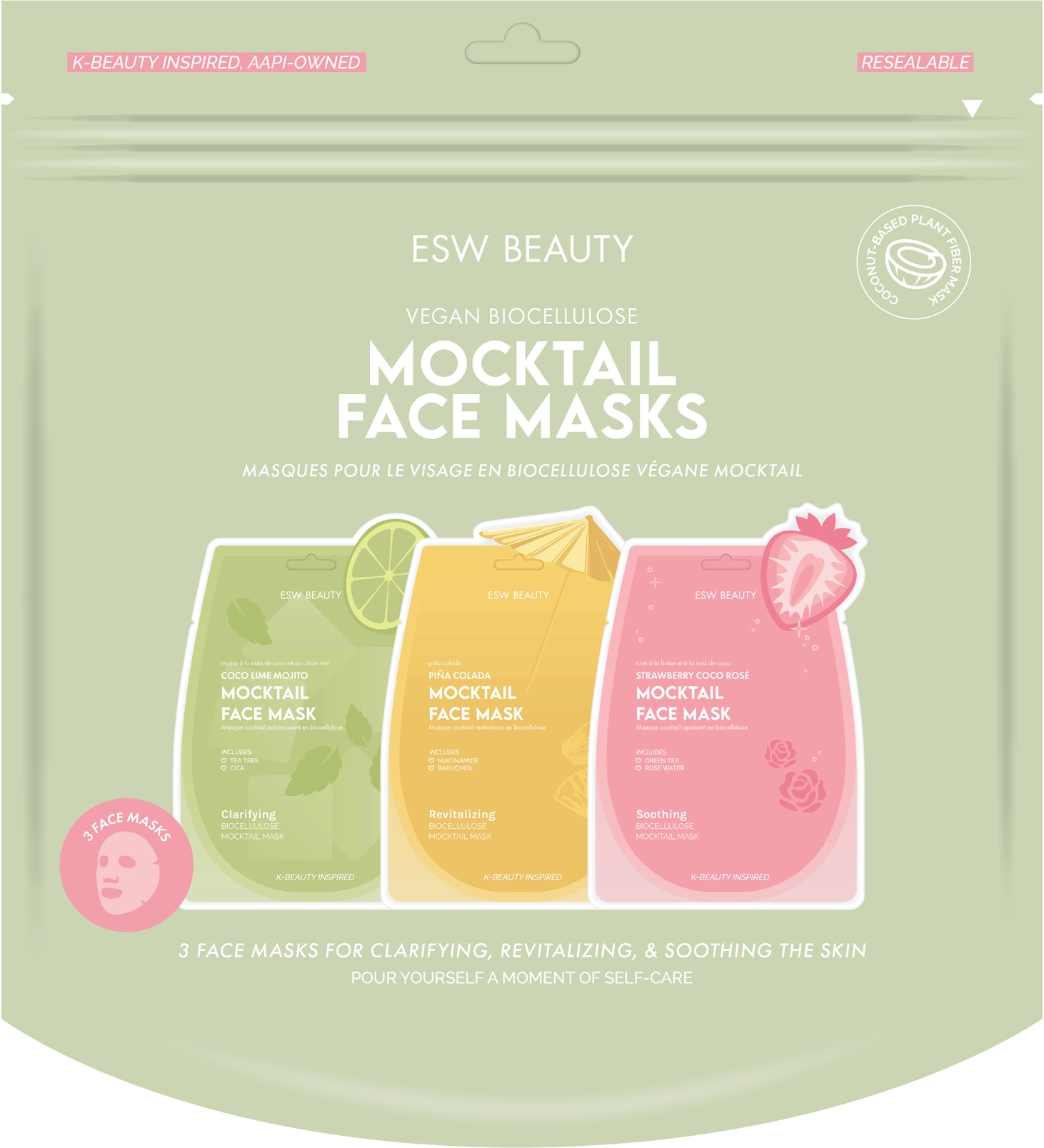 Indulge in our mocktail-inspired mask trio made from natural coconut fibers for superior hydration and ingredient absorption. Each mask targets a unique skin concern — revitalizing, clarifying, and soothing — for a refreshed, radiant glow.